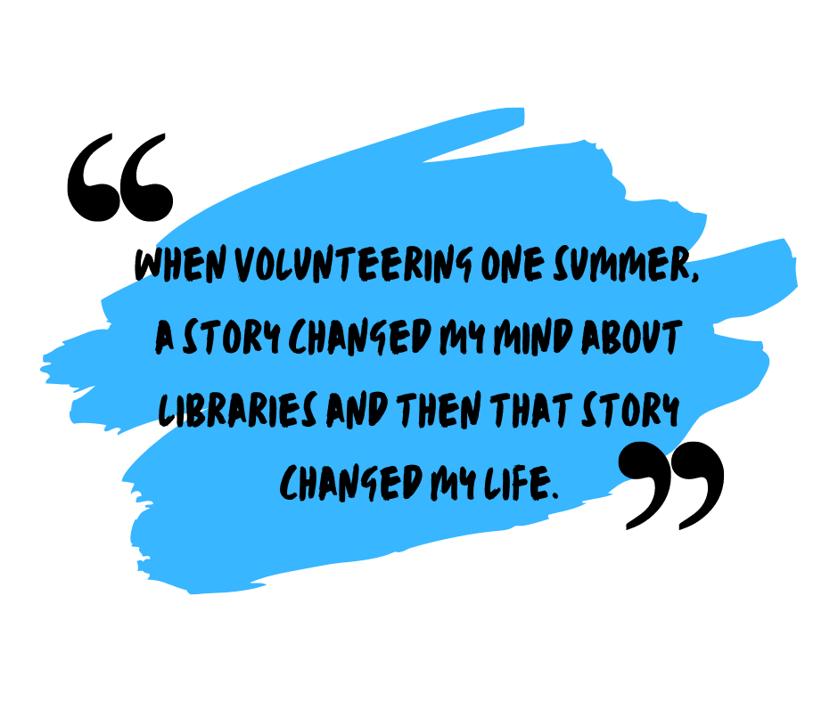 But . . . when volunteering one summer to meet an undergraduate requirement, a story changed my mind about libraries and then that story changed my life (as well as the trajectory of my career).